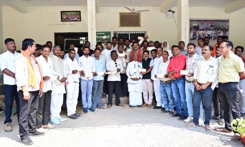 उप मुख्यमंत्री एवं कवर्धा विधायक विजय शर्मा ने आज कवर्धा स्थित विधायक कार्यालय में 17 कबीर कुटियों को भजन, सत्संग, कीर्तन एवं अन्य धार्मिक आयोजनों के लिए प्रत्येक कबीर कुटी को 25-25 हजार रुपए की मान से कुल 4 लाख 25 हजार रुपए की राशि का चेक वितरित किया। कबीरपंथ से जुड़ी धार्मिक एवं सांस्कृतिक गतिविधियों को सुदृढ़ बनाने के उद्देश्य से जनसंपर्क मद से वाद्ययंत्रों के खरीदी के लिए यह स्वीकृत किया गया। उप मुख्यमंत्री शर्मा द्वारा स्वीकृत यह राशि संबंधित कबीर कुटियों को आज प्रदान की गई, जिससे वहां नियमित रूप से आयोजित होने वाले भजन, सत्संग, कीर्तन एवं अन्य आध्यात्मिक कार्यक्रमों के लिए आवश्यक वाद्य सामग्री उपलब्ध कराई जा सकेगी।
