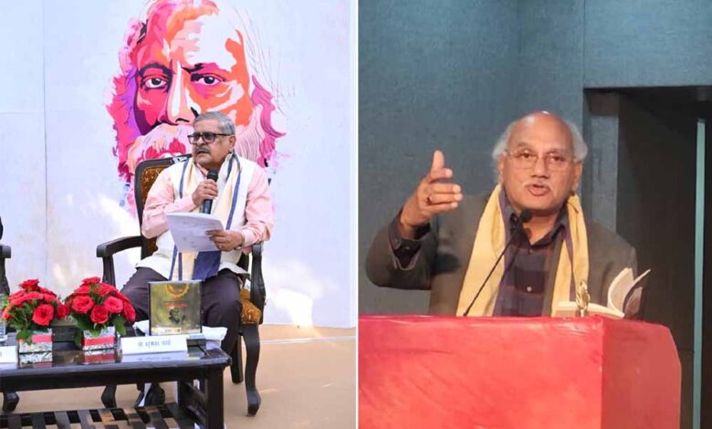 शांतिनिकेतन में आयोजित ‘लेखक से मिलिए’ सत्र में इमारत का पूरा माहौल साहित्यिक ऊर्जा से भर गया। प्रसिद्ध लेखक पद्मश्री डॉ. ज्ञान चतुर्वेदी से बातचीत करते हुए वार्ताकार मुकेश वर्मा ने उनके उपन्यास ‘एक तानाशाह की प्रेमकथा’ के अनेक पहलुओं पर चर्चा की। डॉ. चतुर्वेदी ने कहा कि लेखन एक साधना है और जो पीछे मुड़कर देखता है, वह आगे नहीं बढ़ पाता। उन्होंने सत्ता, सत्ता से जुड़े मनोवैज्ञानिक खेलों, प्रेम और मानवीय व्यवहार की जटिलताओं पर रोचक टिप्पणियाँ कीं। उनकी सहज, हाज़िरजवाब और व्यंग्यपूर्ण शैली ने श्रोताओं को मंत्रमुग्ध कर दिया। यह सत्र न केवल लेखक के व्यक्तित्व को समझने का अवसर था, बल्कि आधुनिक व्यंग्य साहित्य की धारा को भी निकट से देखने जैसा था।