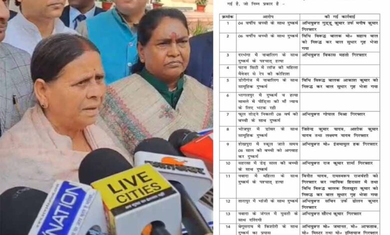 RJD के 14 सवालों का सरकार ने दिया जवाब, राबड़ी देवी ने फिर बच्चियों से दुष्कर्म पर पूछा सवाल?