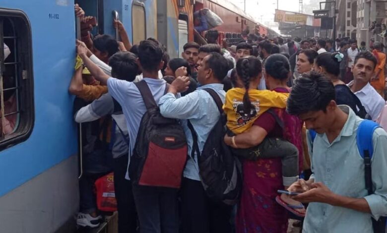 छठ पर्व पर ट्रेनों में उमड़ी भारी भीड़, यात्री टॉयलेट में खड़े होकर कर रहे सफर