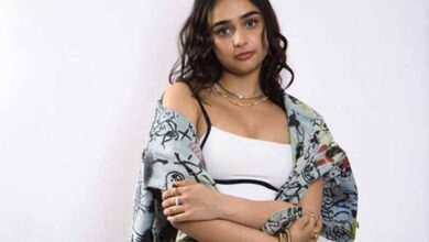 नीले गुलाब स्कैलप डिटेलिंग के साथ स्लीवलेस हॉल्टर-नेक टॉप और मैचिंग पैंट पूजा के मैटरनिटी स्टाइल को दिखाते हैं। टॉप बन और मुलायम आधे खुले बाल बोल्ड और ग्रेसफुल के बीच एक परफेक्ट बैलेंस बनाते हैं, जिससे यह लुक और भी खूबसूरत बन गया है।